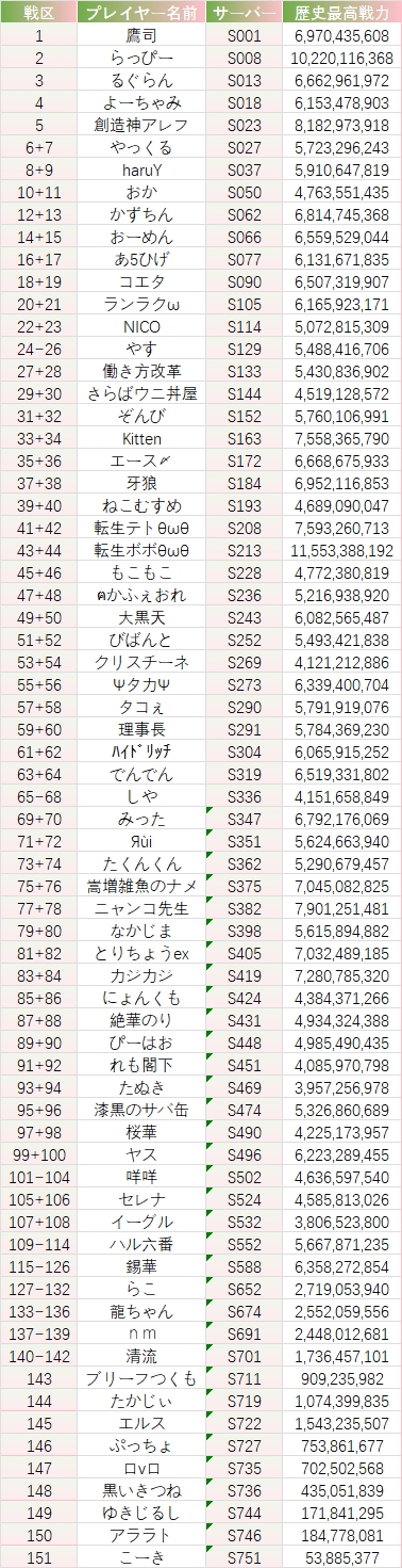 11月12日に開催した頂上対決の優勝者詳細を発表します! 優勝者の皆様、おめでとうございます! 今回はたくさんの執行者様にご参加いただき、ありがとうございます! 次回のご活躍を期待しております!