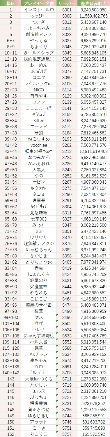 1月07日に開催した頂上対決の優勝者詳細を発表します! 優勝者の皆様、おめでとうございます! 今回はたくさんの執行者様にご参加いただき、ありがとうございます! 次回のご活躍を期待しております!