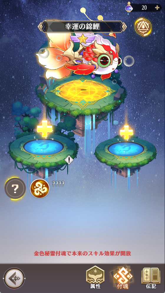 任意の金色秘霊を「幸運の錦鯉」に付魂可能。