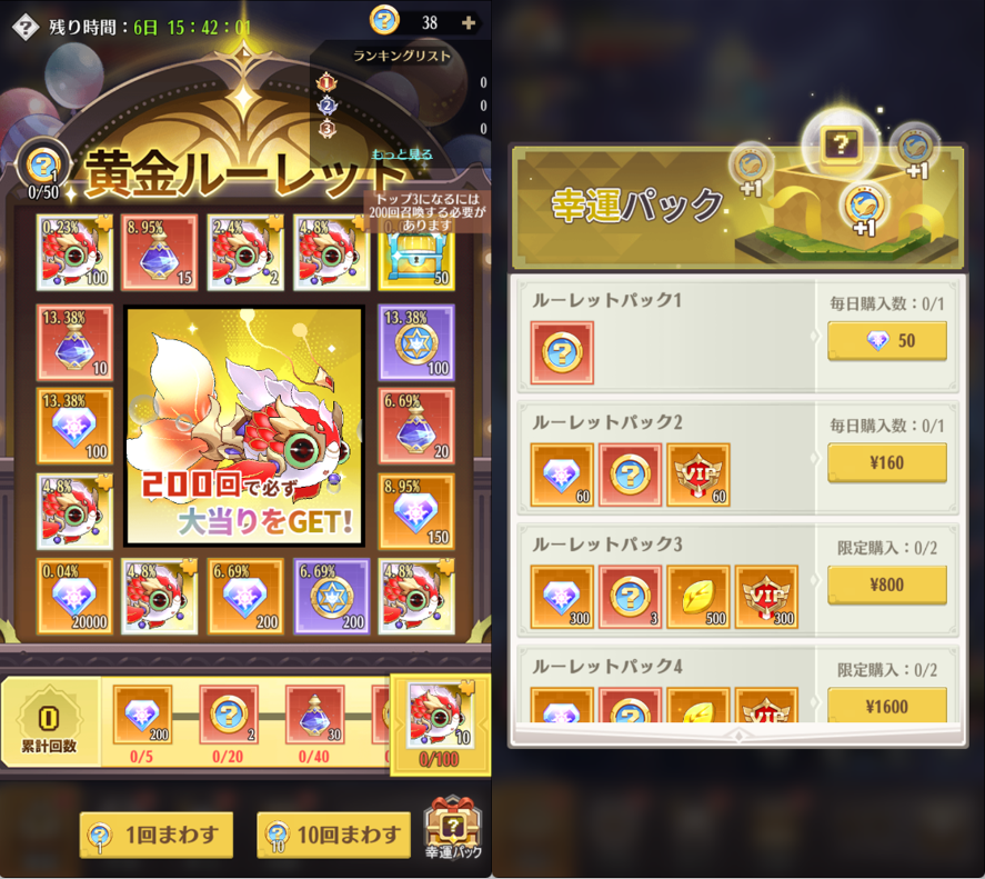 3、ルーレットを回す回数は、次回のイベントに継承されません。