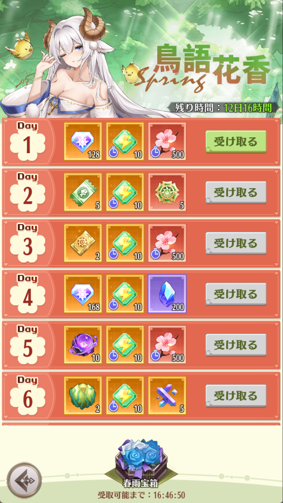 特典のログイン宝箱がイベント開催数日後に開けます。