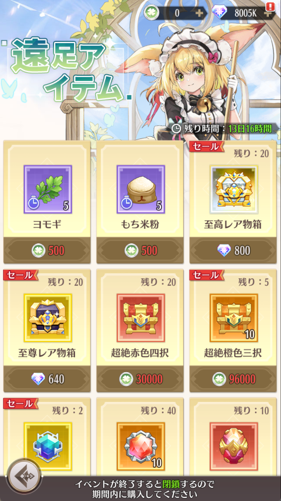 6、イベント終了後、行動ポイントは使用できなくなるため、期間内に使ってください。