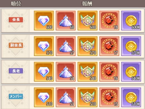 ④トップ16ギルド所属メンバー(会長除く)の「ギルド争覇戦」報酬を一部改善。