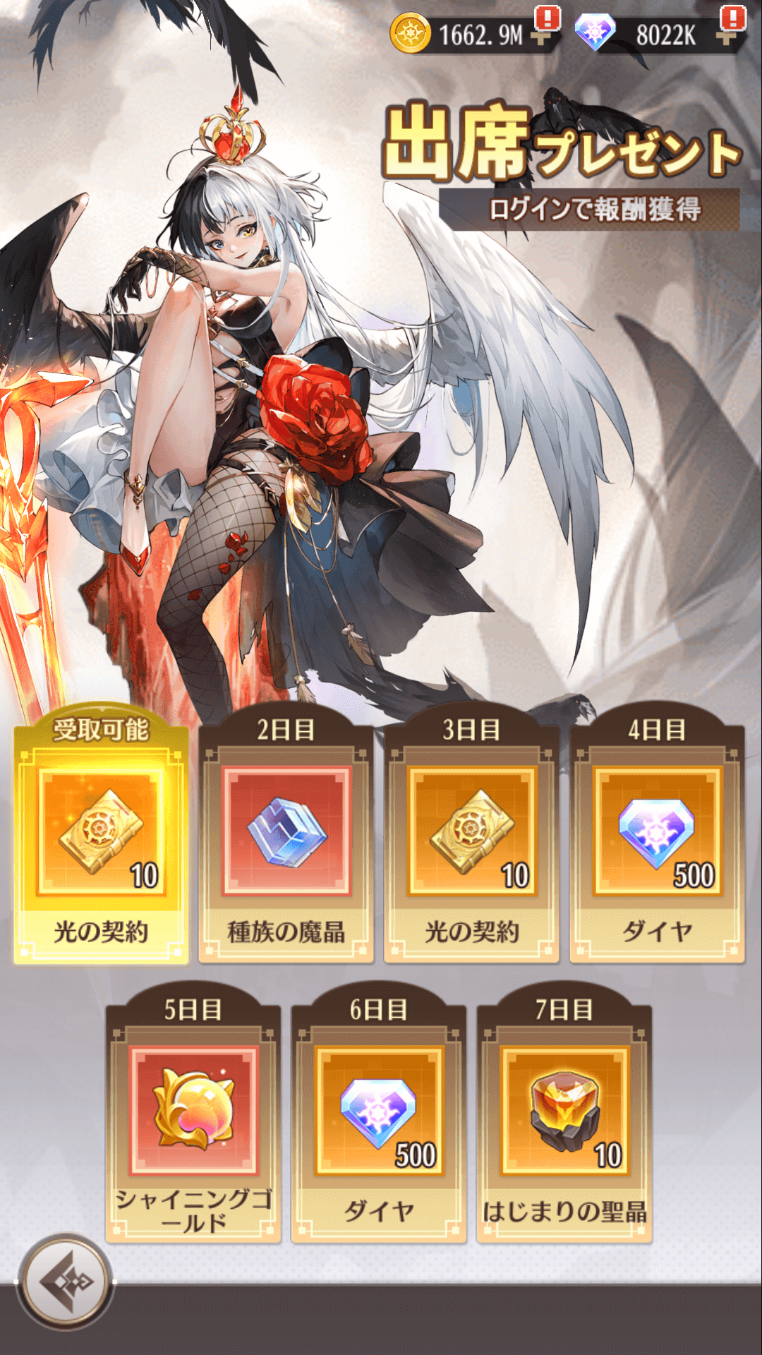 7日目に召喚アイテム「はじまりの聖晶」x10を無料で獲得できます。