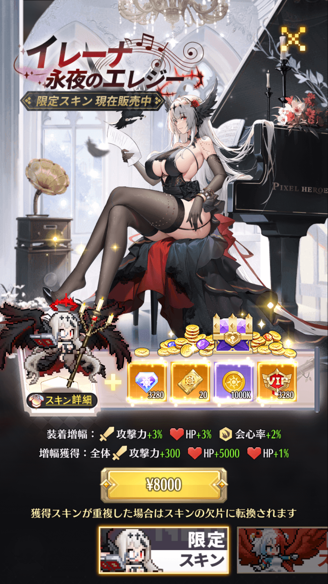 *下記のスキンは「文明の伝承者・イレーナ」&「極寒の守護者・グレータ」&「混沌の申し子・ライン」の期間限定イベントでしか獲得できません。