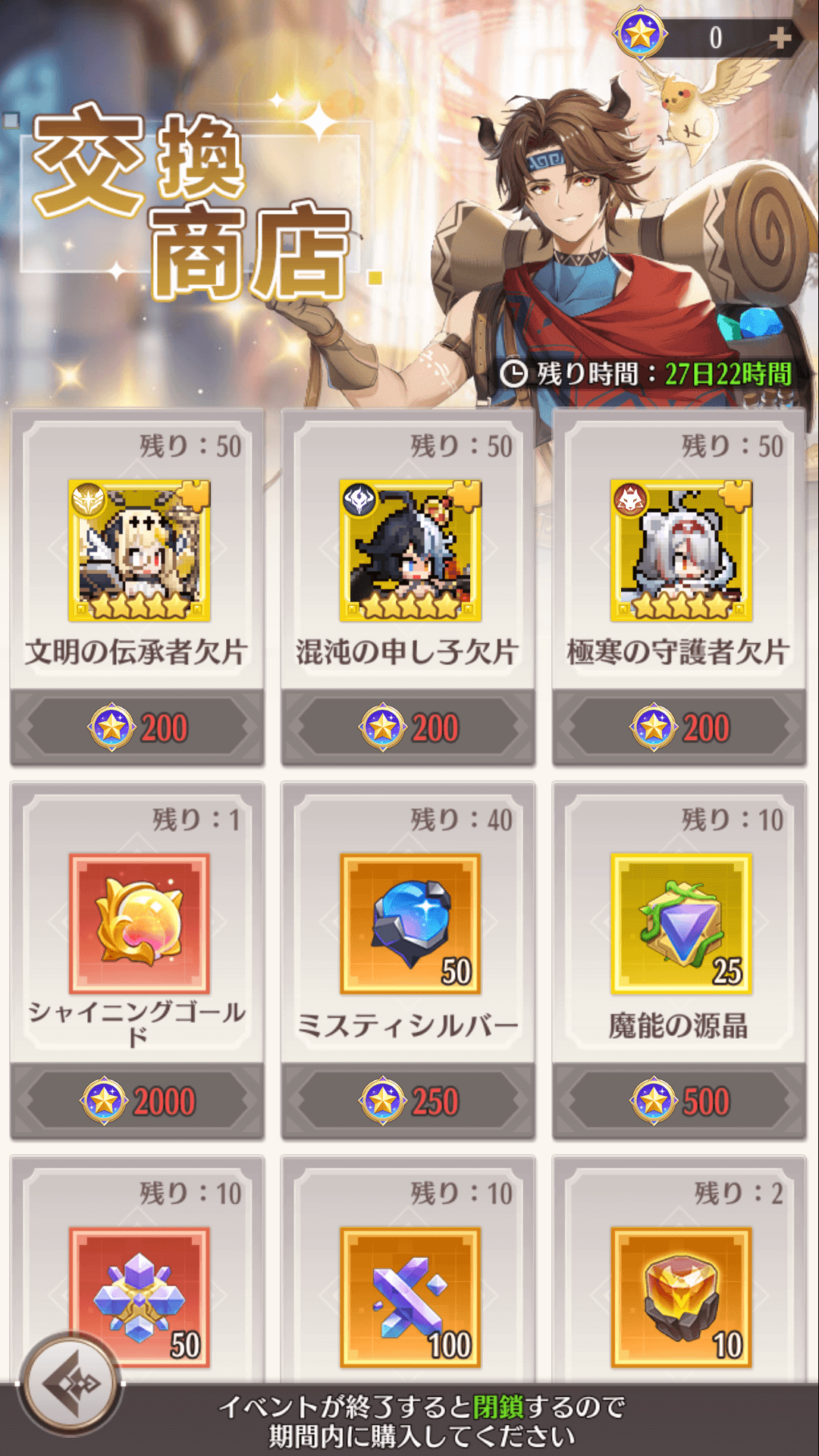 (前回未使用の交換商店通貨はリセットされ、今回の交換商店では使用できません。)