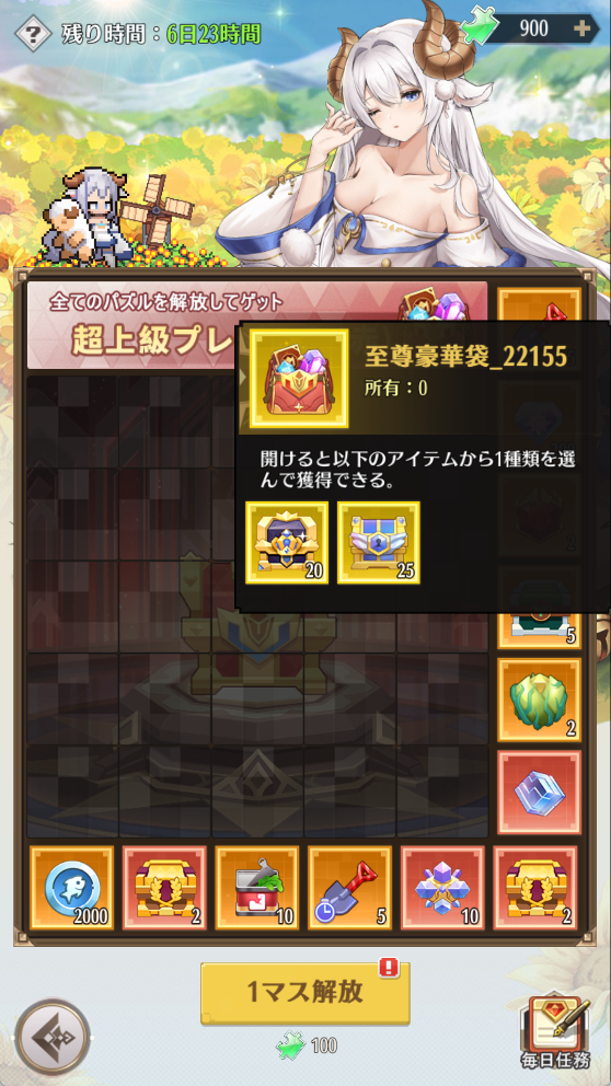 全てのパズルを解放したら、至尊豪華袋を獲得できます。
