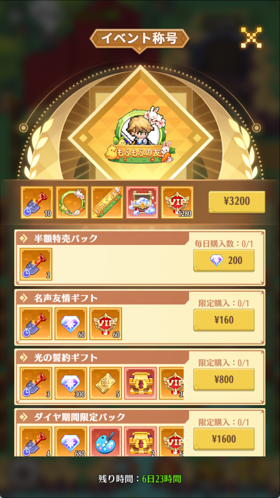 イベント期間中、期間限定アイコンフレーム「草原の春音」と称号「もふもふの友」の期間限定パックが販売されます。