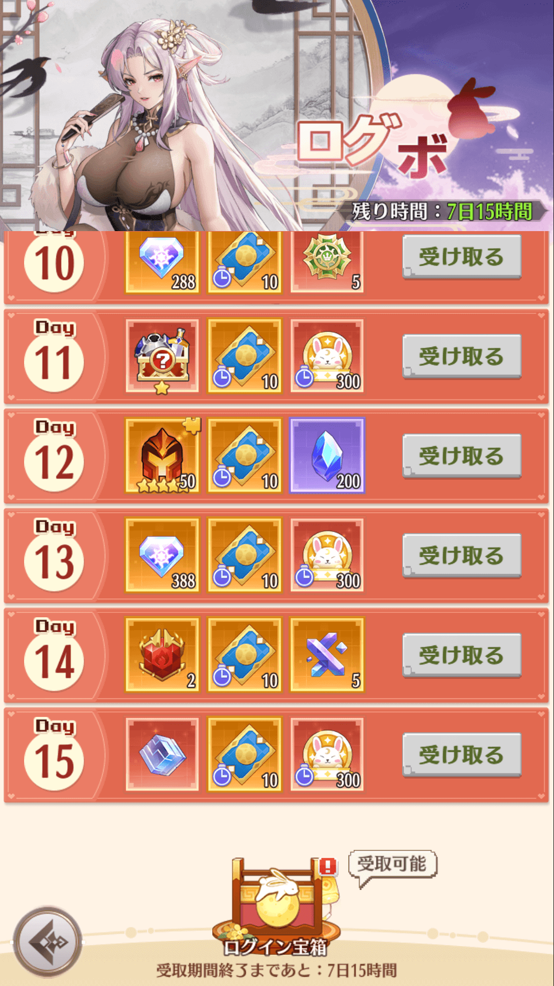 イベント開催期間内ログインすると報酬をゲットできます。