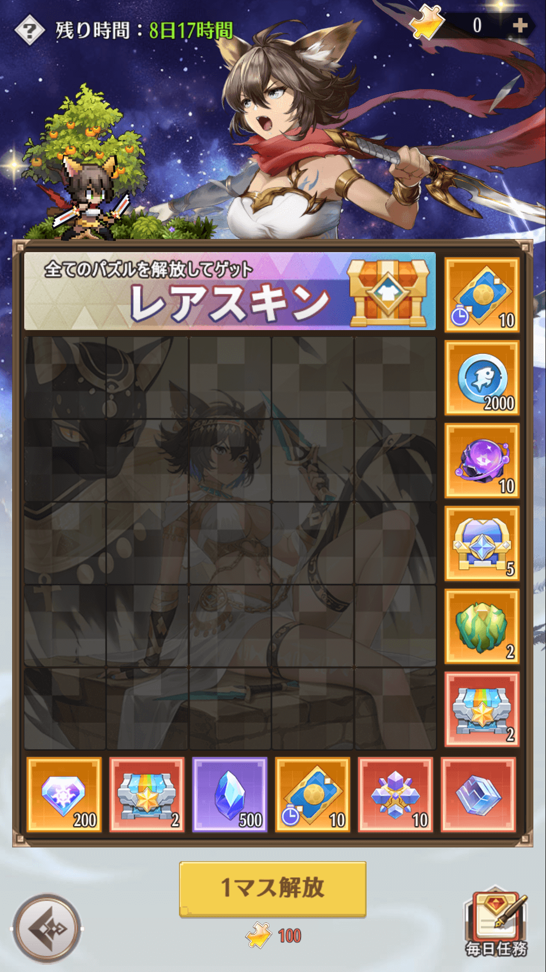 毎日任務をクリアすることで「パズルの欠片」と様々なイベントアイテムを獲得できます。