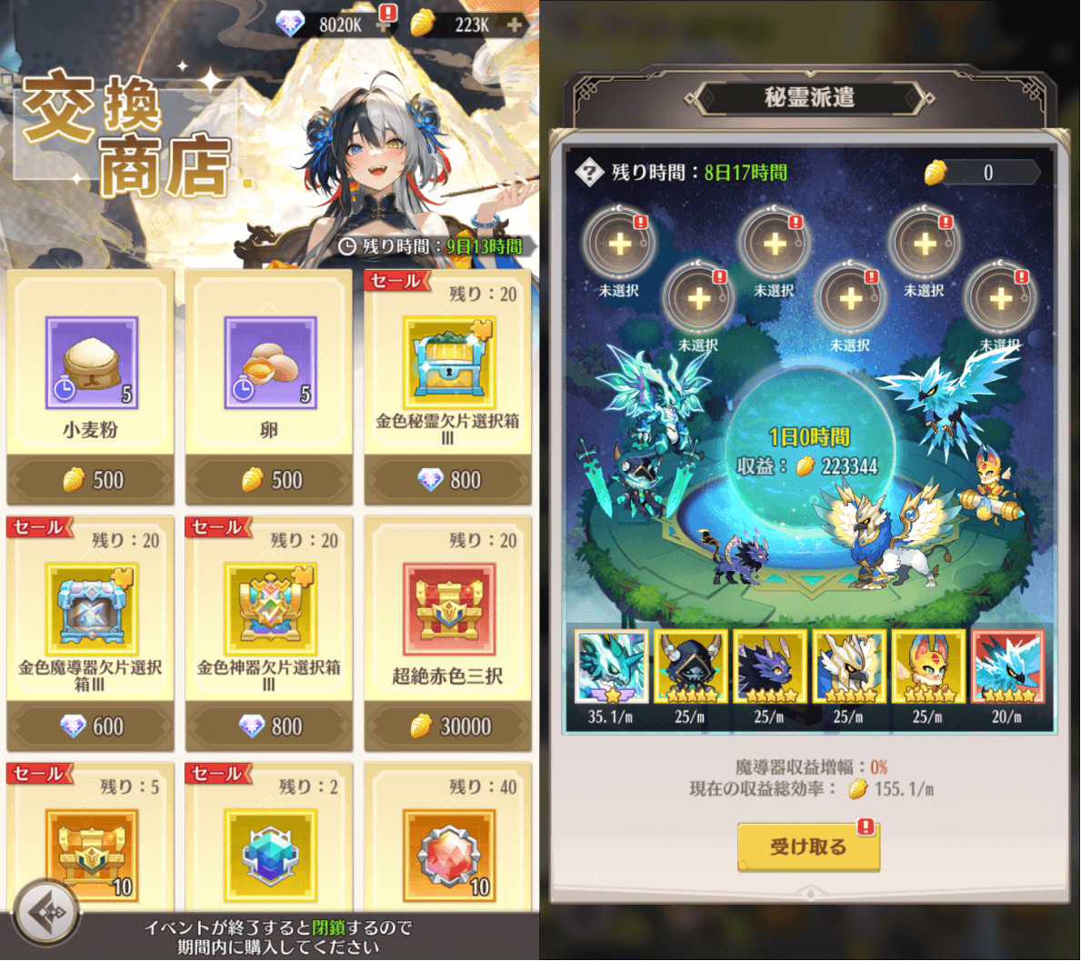 2、秘霊派遣では、「月下の宴」の交換アイテム「人参コイン」獲得できます。「人参コイン」は「交換商店」にて交換に使用できます。