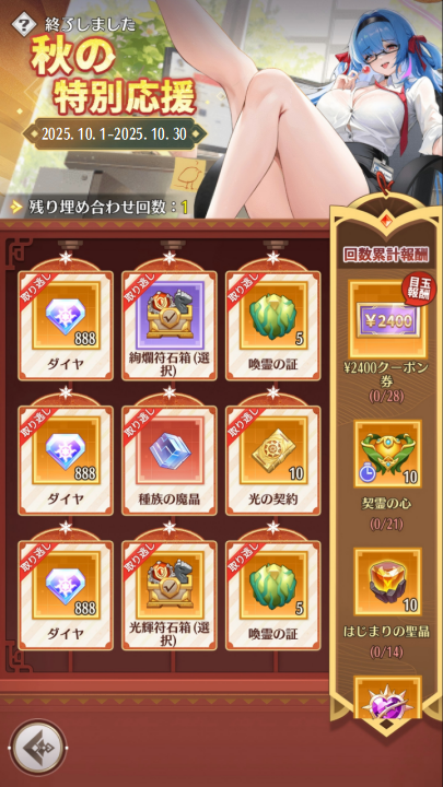 2、累計サインイン日数に応じて、特別応援報酬が受け取れます。