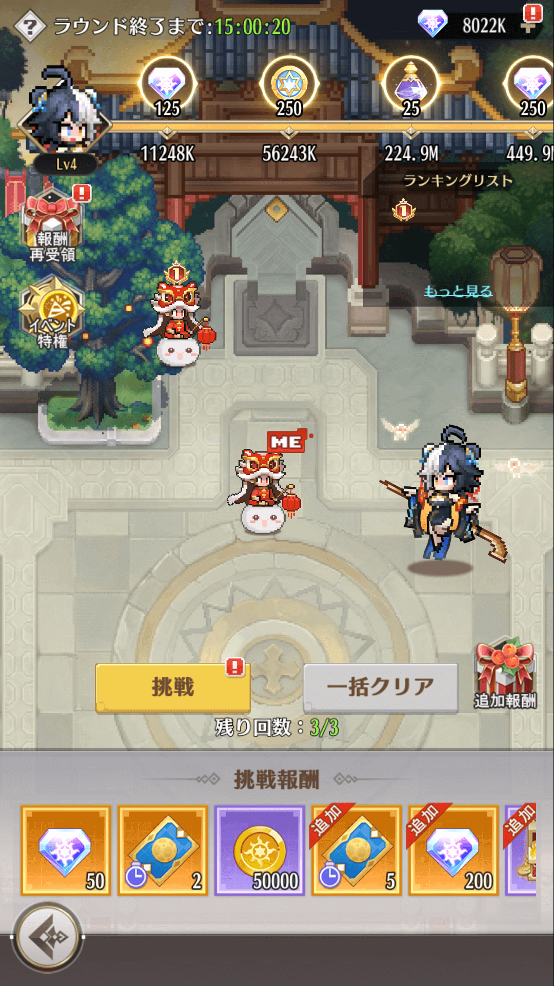 4、イベント期間中は何度でも挑戦可能ですが、各ステージのクリア報酬は1回のみ獲得できます。