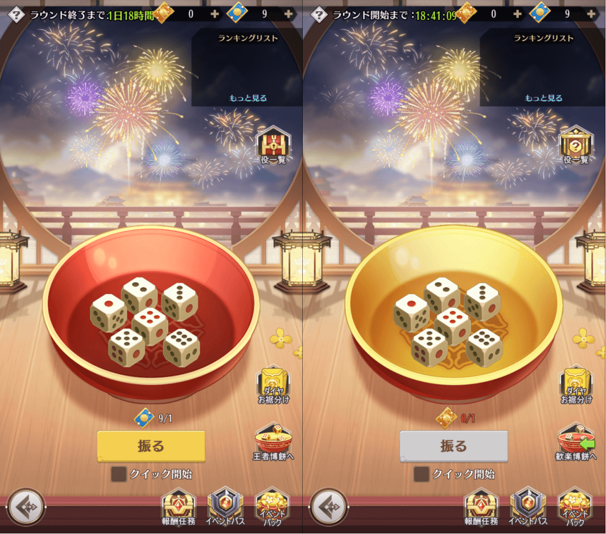 4、歓楽博餅で状元(じょうげん)以上の役を揃えると王者博餅参加券を獲得できます。