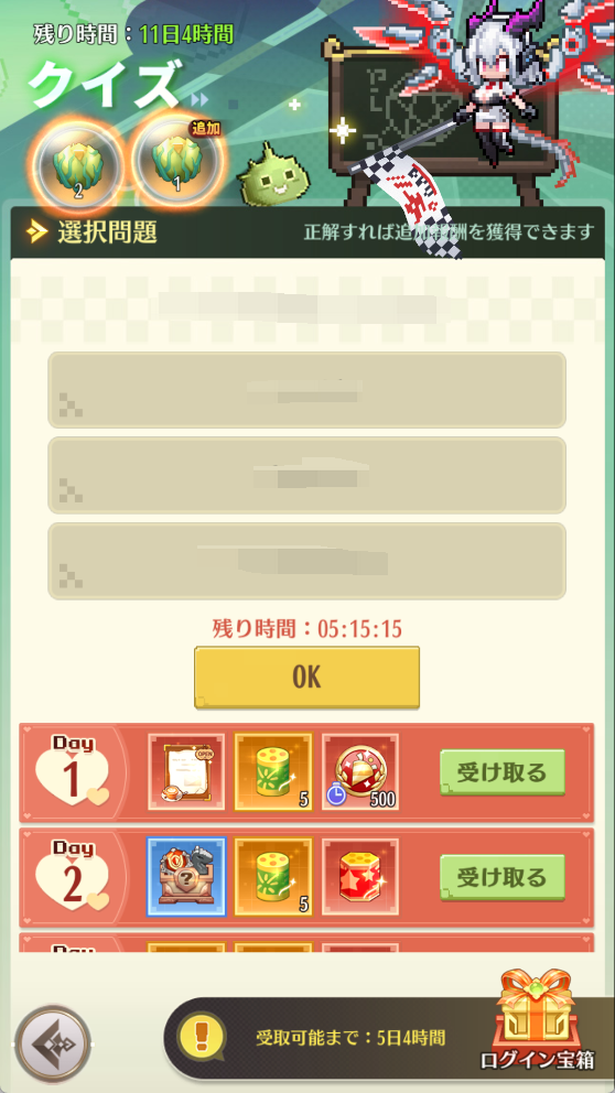 2.ログインボーナスの宝箱はバッグから使用できます。イベント終了しても、宝箱は消えません。