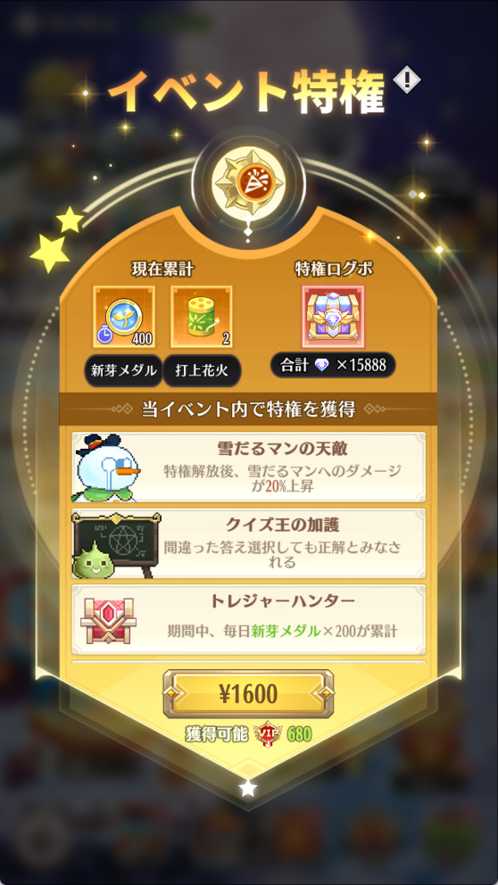3.すべての特権効果はイベント期間中にのみ有効となります。