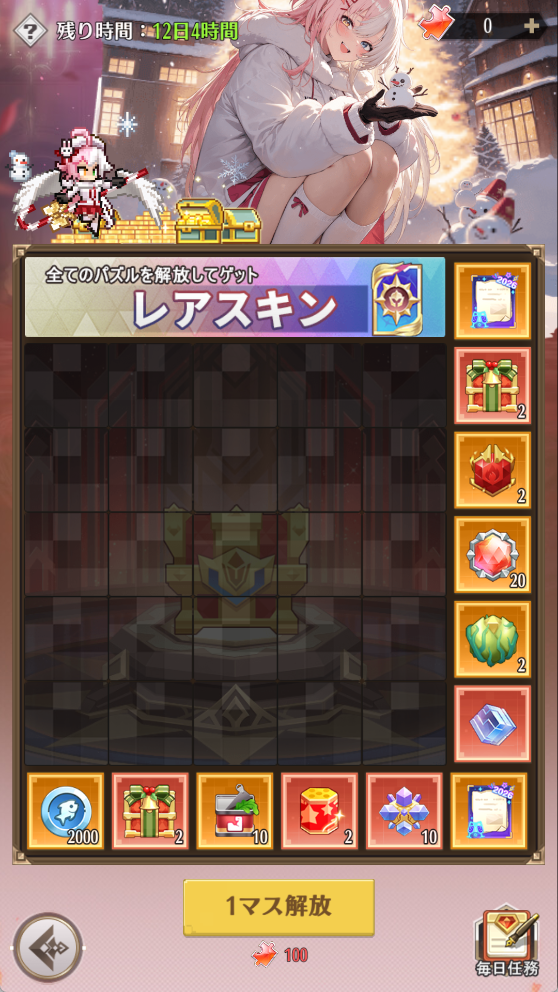 1.亻ン卜期間中、每日任務を完了すると、パズルのマスを解放するためのパズルの欠片を獲得できます。