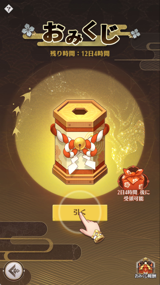 1.イベント期間中に、ゲームにログインする二とで1日1回おみくじを引けます。