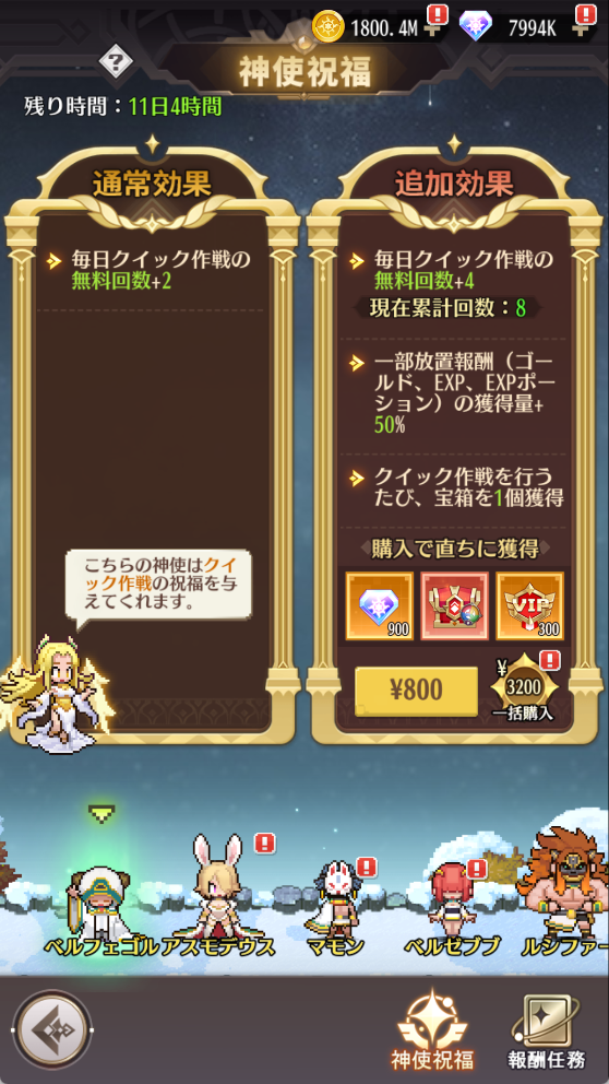 1.神使祝福は各コンテンツに増益効果を与え通常効果(無料)と追加効果(有料)に分けられます。