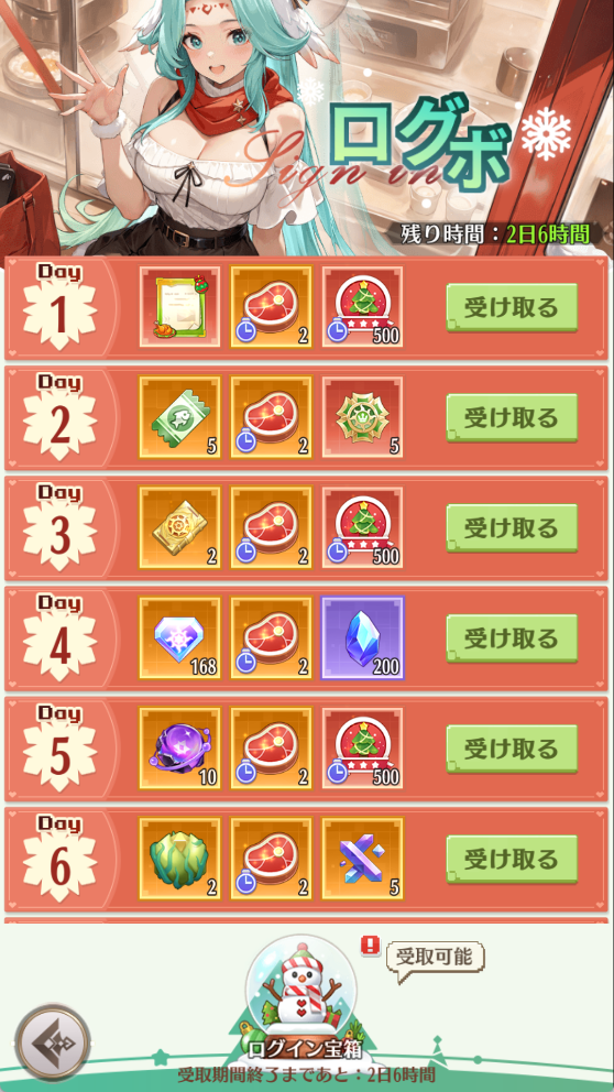 特典の「ログイン宝箱」がイベント開催数日後に開けます。