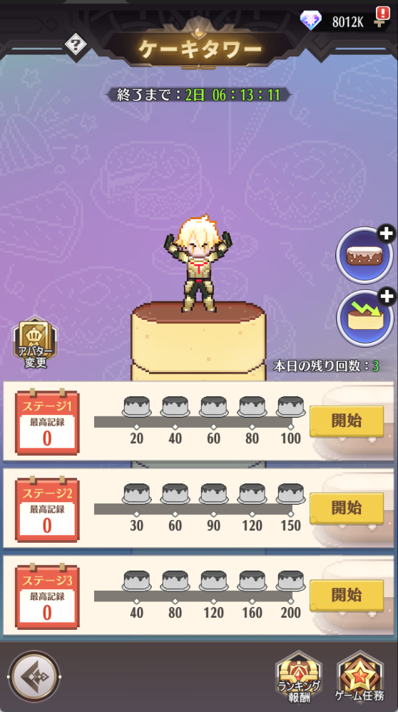 2.ステージに挑戦可能な無料回数は毎日3回あります。また、ダイヤで挑戦回数を購入することが可能です。