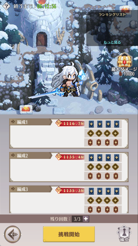 1.連戦試練では、3つの編成(編成毎に勇者最大3体)でボスに挑戦します。
