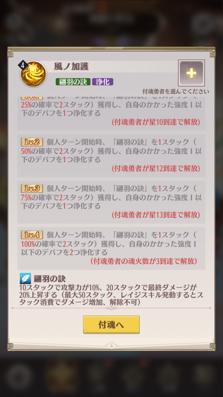 4、付魂勇者が星10まで到達すると、追加の付魂スキルが解放されます。付魂勇者の星Lvが高いほど、付魂スキルのLvが高いです。