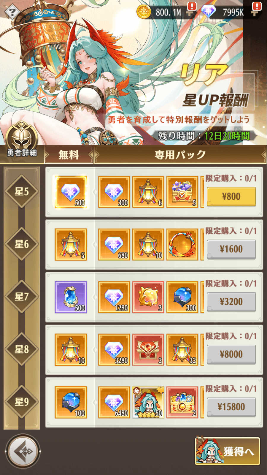 イベント期間中、「魂蝶の巫女・リア」を星UPさせ、星Lv条件を満たすと報酬を受け取り、対応する星Lvのパックの購入資格を獲得できます。