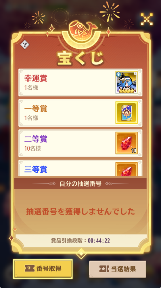 4.イベント終了後に、受け取っていない大当たりはメールで配布します。