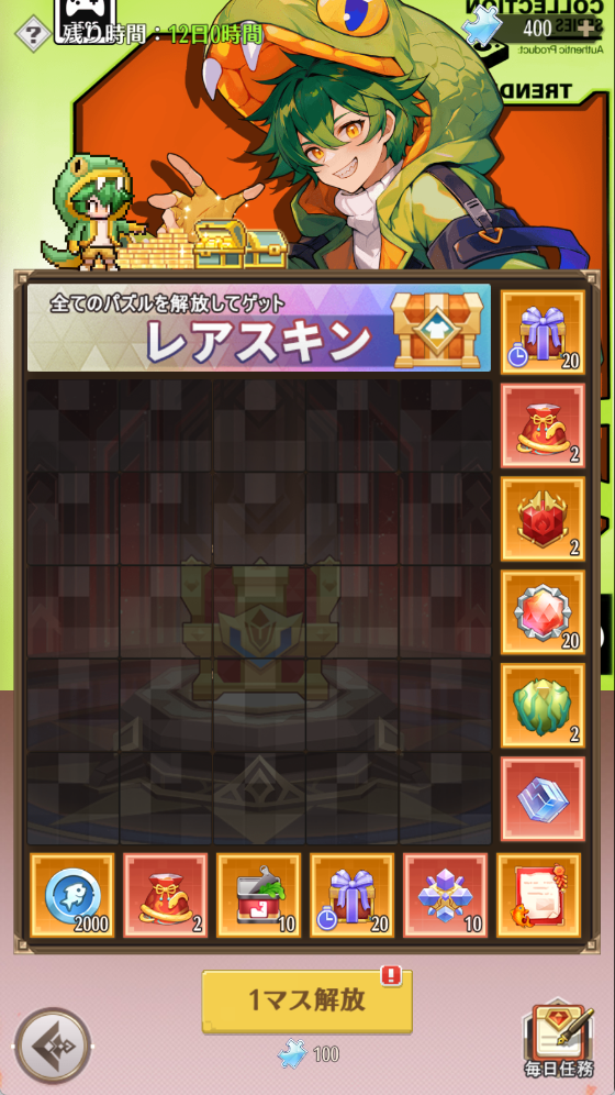 毎日任務をクリアすることで「パズルの欠片」と様々なイベントアイテムを獲得できます。