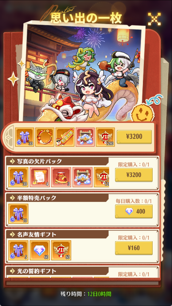 5.特権効果による回数と通常効果で獲得できるアイテムは当日にのみ有効です。翌日になるとリセットされますので、期間内にご利用/お受け取りください。